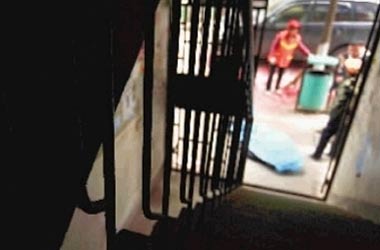 当日上午9点半,记者来到事发地点。老人已被送到楼道出口的前坪,蒙着蓝布。家人正悲伤地守在现场,等候殡仪馆工作人员的到来。