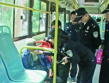 据了解,当天这辆公交车行驶到北京东路40号门前时,突然有人对司机喊,“车上有人昏过去了,赶快停车报警。”随即,司机靠边停车,打起了双跳灯,驾驶员报警。接警后,玄武特巡警立即赶往现场,同时120救护车也前往现场。公交车上的一老年男子处于无意识状态,嘴角有呕吐物涌出,赶到车上的一名年轻女警见老人的老伴很慌张,且推搡晕倒的老人。这名女警安慰晕倒老人的老伴,并掏出纸巾帮助老人擦拭呕吐物。现场目击的陈先生拍下了这一幕,他告诉记者,当时那名女警很细心,真是人美心更美,后来有人询问她的姓名,她只说自己姓孙。