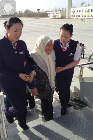 民航资源网2013年3月9日消息:2013年3月6日,中国东方航空股份有限公司(China Eastern Airlines Corporation Limited,简称“东航”)西北分公司客舱服务部乘务一部李爱菊乘务组(李爱菊、李娅薇、李燕B、张蕾C、阎琳)执行MU2398(西安至乌鲁木齐)航班,在航班上客的过程中,站在机舱门口迎客的李爱菊乘务长见有4位少数民族的老人手提着行李,搀扶而行。李爱菊三步并做二步赶上前去,接过老人手中的行李交给赶来的乘务员张蕾,这才发现其中一位少数民族老人的视力属于是弱视,李爱菊急忙搀扶着老人进入客舱就坐,一边嘱咐张蕾先给老人递一杯水和湿毛巾,让老人润润喉、擦擦汗;一边安排其他3位少数民族老人落座,并将她们的随身行李安放在行李架上。