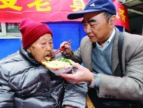 儿子喂任奶奶吃长寿面 现代快报记者 施向辉 摄