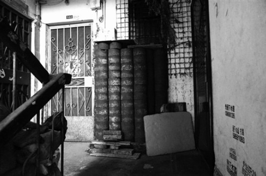 将近一人高的蜂窝煤堆在楼道当中(资料片)记者于腾腾摄