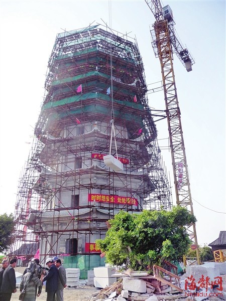 本报讯 屹立在莆田涵江区雁阵山上的明代石塔雁阵塔,百年来为往来的航船照明护航。抗战年代,由于目标明显,石塔被炸毁。从此,重建雁阵塔成为涵江鳌山村几代人的心愿。几年前,村里20位老人成立建塔理事会,他们筹款集资,去年终于把建塔提上日程(详见本报2012年3月14日P5版)。时隔一年,新塔即将完工,可老人们却有可能背上巨债。