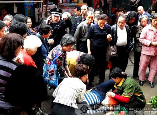 广西新闻网柳州讯(记者余俊 通讯员邓湖广 赖鸿香)路遇老人晕倒怎么办?昨日上午11时左右,一名买菜的老妇人在柳州青云菜市突然晕倒,一名穿条纹白衣的女子以及周围市民再次给出了“亲盆”答案:救!而事后有市民认出,出手相助的条纹白衣女子,正是柳州市副市长崔惠柳。据悉,当时崔惠柳正在相关部门陪同下在该市场检查创卫工作。