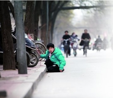 女孩看起来有十来岁,不时试着朝马路方向挣脱,发现没用后,就蹲下来捡地上的树叶、纸屑。麻将摊女摊主说,女孩患有脑瘫,总是到处乱跑,有时看见车就会往上挤,家人特意让姥姥带着她。看到有人围观,麻将摊摊主暗示女孩的姥姥出来。老太太回了一句:“(孩子)跑了没?没跑你喊我干啥!”围观的人越聚越多,有人担心车会碰上女孩,建议老人先把孩子带回家,“不管咋样,也不能这么带孩子呀!”
