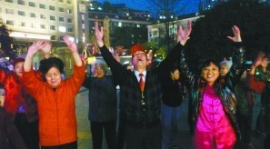 “哈哈哈哈哈哈……”每晚7点半至8点半,人民广场交巡警平台附近的一处空地上总是笑声荡漾,一群男女老少在轻音乐的陪伴下,时而抖臂仰天长笑,时而双手捧腹畅笑,时而吐舌瞪眼欢笑,时而相互握手微笑,时而鼓掌踏步大笑……上至年过八旬的老人,下至不足十岁的孩子,上百人如此开怀,实在无法不引来路人驻足围观。