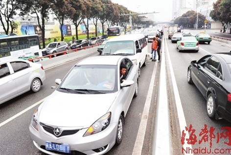 海峡都市报 昨日上午11时50分,一司机开着凯迪拉克,在福州二环龙腰高架桥上桥处,不慎撞上面包车,引发四车追尾事故,所幸未造成人员受伤。