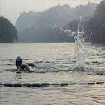 12月15日,宜宾市长宁县淯江河畔的四川省冬泳艺术节,吸引了来自云、贵、川、渝等省市的48个游泳协会2200余人齐聚于此。开幕式过后,一部分冬泳爱好者们在岸边开始热身“摩拳擦掌”,跃跃欲试。随后,一阵阵水花飞溅,他们跃进淯江,畅游开来。