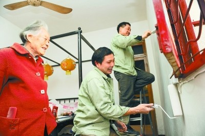老人所居住的房屋由于年久失修,四壁斑驳脱落,水泥地面凹凸不平,电线如同蛛网,门窗也四处漏风。鸿扬家装公司的负责人从本报得知这一情况后,主动组织员工上门查看房屋情况,制定修整方案。公司派出装修师傅来到老人家中,义务为老人刷墙、修补门窗、整改电路。考虑到施工给老人生活带来不便,装修期间,他们每天给老人送来爱心午餐、晚餐,收工前还会细心地帮老人把屋子打扫干净。为了老人的健康,他们还特意采用调和环保漆粉刷墙壁。此外,还特意为老人定制了一个储物柜存放杂物。短短4天时间,老人的小屋旧貌换新颜,不少邻居参观时均赞叹不已。