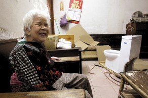 坐便器来了,85岁的汤婆婆开心得连声多谢居委会工作人员。/佛山日报记者张嘉颖摄