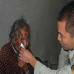 12月15日上午,宿豫分局交巡警大队五中队民警潘勇、辅警徐江驾驶警车沿苏250公路由东向西前行,在行至蔡集镇牛角村一路口时,发现一名女性老人呆坐在路边,身边还放着拐杖。潘勇即靠边停车,弯腰上前与其沟通,但老人说话含糊不清,有气无力,问了半天只知道老人叫春梅(化名),别的都不清楚。