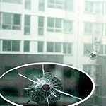 17日下午3点半,记者来到了崔先生的家中。此时记者看到,北屋的窗户是双层的,外面一层窗户有三个“弹孔”,其中两个在下面,一个在上面。下面的两个“弹孔”很圆,周边呈蛛网状,而上面的一个“弹孔”旁边的玻璃掉落了一块。