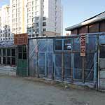 石头垒的半截墙,上面架着木质的旧窗扇,工地用的蓝色围挡成了后墙,顶棚则用塑料布罩起来。这不是哪个荒地里的临时茅屋,而是金州新区董家沟卧龙园小区的老年人活动室。这个活动室是该小区老年人自掏腰包从拆迁工地购买来杂物,自己搭建的,每天都有近百位老人来此休闲娱乐。