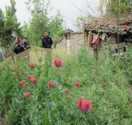 日前,鲁斌来到所驻村桑园堰走访。他在一个小土丘上,看到一户被树林掩映着的农舍院子里栽种着一种奇怪的植物,已有少半开花,花朵红里夹黑。“这花好奇怪!”鲁斌警觉起来。他用手机将花拍下来,带回所里研究。他在网上搜索后发现这种花竟是罂粟,便立即向值班领导董安定报告。
