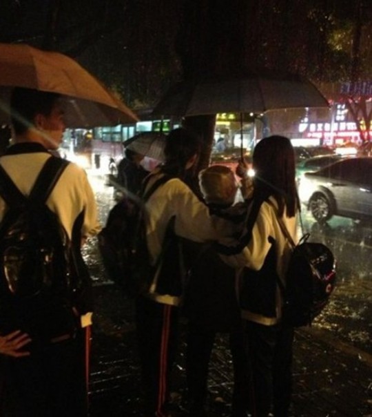 昨晚7时20分,大雨滂沱,在省立医院公交车站,一名白发苍苍的老奶奶没带伞,正在候车,但没能挤上拥堵的公交。这时,一旁两名合撑一把伞的女生见状,上前围在了老人的两边,为老人撑伞遮雨,还不停地用福州话安慰老人:“别急着上,雨很大,车上很挤,你上车,也不方便,我们一块多等会儿。”昨晚,记者赶到现场时,老人和两名女学生已经离开。