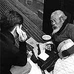 “天气阴冷,我估计他饿了,就走过去问他是不是没吃晚饭。”“此地无莹honey”蹲下来掏出钱包。“不用了,我够用,也有吃的。”看到“此地无莹honey”掏钱,老人赶紧伸手制止。“此地无莹honey”被老人的举动怔了一下,觉得他是一个善良人,就和老人聊起了家常。老人的思路很清晰,还有点文化,说起身世还哭了。