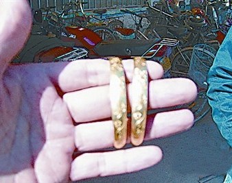 521路司机李明春当天开车到了关山终点站,发现驾驶室车门附近的三个座位上有一袋削了皮的荸荠,在塑料袋下面还压一个金灿灿的东西,翻开一看是个金镯子。李明春赶紧将金手镯交给关山站调度员,到了晚上11时,没人来认领,又将金手镯交到公交五公司。