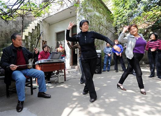 “最美不过夕阳红,温馨又从容,夕阳是晚开的花,夕阳是沉年的酒.”日前,记者循着嘹亮高亢的歌声,穿过七弯八拐的小胡同,来到安陆市府城街道办事处北正社区鲜鱼巷居民袁玉琴的家里,好是热闹。在洒满阳光的小院里,20多位老年人正在吐出嫩叶的葡萄架下唱歌,小楼几面斑驳的墙上铺满绿色的爬山虎。
