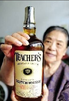 酒瓶标签已经泛黄 上面印着TEACHER’S