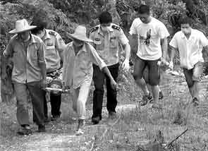 医护人员赶到现场后,给老人做了简单的包扎处理。民警和村民一起,将受伤老人抬出了山坳。