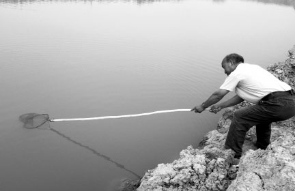 “我就像在水中舀鱼一样,先用网兜罩住一个孩子头迅速拉到岸边;然后用同样的方法把另外一个孩子也拉上了岸。”昨日,救人老人拿着逮鱼网兜跟大河报记者比划着说。