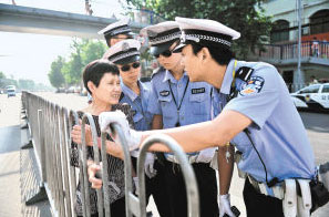 昨天上午8时,在十里铺十字路口当班的民警,突然发现马路中央的隔离带旁有一位老人神情异常。当班的交警连忙走过去询问情况,可老人外地口音很重,让几名交警犯了愁。无奈的他们只好把老人带到对面的小广场上,一边照顾老人,一边和老人攀谈。