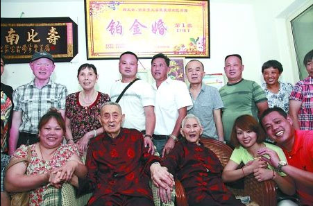 “我妈18岁时就嫁给了爸爸,他们现在结婚78年了,几乎没吵过架,出门都要手牵手,睡觉从没分过床”,小儿子邓万福说,去年,邓文举和曾素芳荣获渝北区首届铂金婚第一名,是该区婚龄最长的一对。