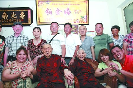 “我妈18岁时就嫁给了爸爸,他们现在结婚78年了,几乎没吵过架,出门都要手牵手,睡觉从没分过床”,小儿子邓万福说,去年,邓文举和曾素芳荣获渝北区首届铂金婚第一名,是该区婚龄最长的一对。
