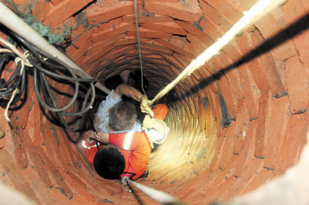 “有个老人掉到井里去了,快撑不住了,你们快点来咯!”昨日7时40分许,望城区金坪社区胜利路口附近一位老人掉进一口有水的深井,居民立即拨打119报警。望城消防中队出动1台抢险救援车和9名官兵救援。
