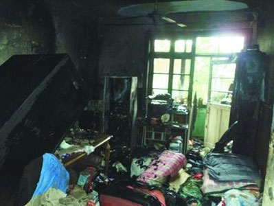 70多岁的独居老人离开家时间不长,卧室隔壁的小房间内冒起了浓烟和火焰,楼里的居民抱着孩子紧急逃生,消防车却被两辆乱停的私家车挡在了院外。昨天上午7时50分左右,宁化路与杭州路路口的一栋居民楼三楼突然起火,怀疑火灾原因跟小屋内冰箱、电脑和微波炉共用一个插线板有关。