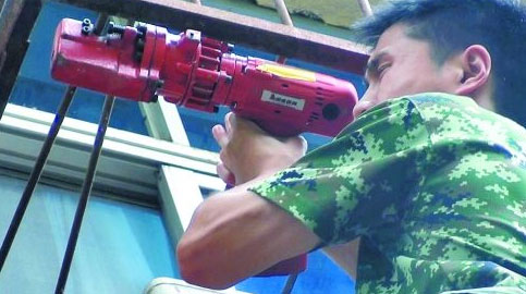 消防队员告诉记者,王女士家住3楼,经过一番研究,消防队员们架起拉梯,直通3楼窗口。随后一名消防队员爬上拉梯,在窗口用钢筋速断器剪断了防盗窗。据悉,当时,老人正坐在客厅看电视,并无危险。
