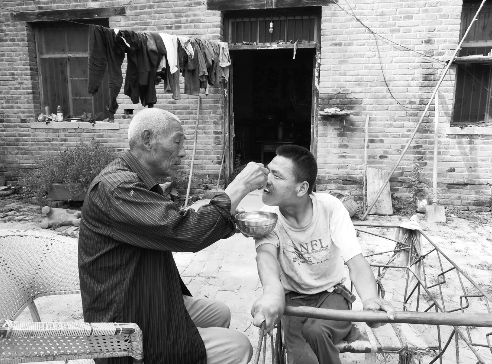 “晓帮有100多斤重,我每次帮他解手都要累出一身汗。”吴之恩说,晓帮的饮食起居全在他的照料下完成,而他每次经历这些都累得上气不接下气。