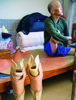 老人右腿已被截肢,仍未脱离生命危险。