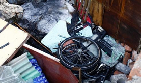 老人已经遇难,从现场来看,老人当时奋力往外逃,但人从床上到地上时,脚卡在了旁边的轮椅上,再爬也使不上劲儿了。”