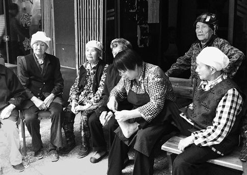 取下工具包,将小剪刀、大剪刀、剃刀、锉刀等一一摆放整齐,再系好围裙,戴上老花眼镜,聂启萍招呼着老人依次排队坐好,开始“工作”。