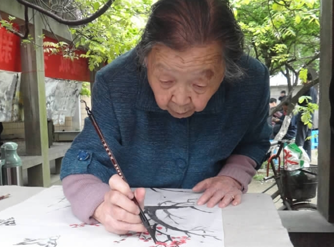 潘香桂老人是土山镇栾家村一位村民。说起作画,老人自称“半路出家”。年轻时,潘香桂老人喜欢在鞋子上绣花,老伴儿张洪基爱好写毛笔字,平时耳濡目染多少受了些影响。老人说,真正拿起笔来画画还得从60岁之后说起。“退休在家闲着没事,就想给自己找点事情做,闺女从外地给我买回一些画册,我最初开始照着画。”潘香桂告诉记者。