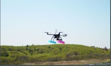 不久,小王驾车匆匆赶到现场。只见他戴了一副特别的眼镜,手里拿个遥控器,从车上取下了一个“玩具”。这是一个呈正方形的飞行器,长宽约30多厘米。“正方形”的每个“角”上都装有一个螺旋桨,飞行器的中部连接了一台500多万像素的高清摄像机,可以拍摄视频或图片,在机身上还装有一套无线传输系统,可以把摄像机里拍到的视频传输到地面上的接收装置或者是视频眼镜里。