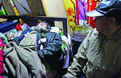 记者离开派出所时,孔大伯依然躺在临时的床铺上。