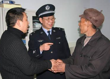 前天傍晚5点半,一辆从安徽宁国开来的出租车停在杭州闸弄口派出所门口。车门一开,一名男子背着个白发苍苍的大伯走进值班大厅,后面跟着一个中年女子,手里拎着大包小包。