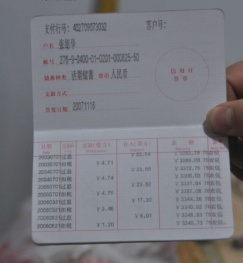 记者在这本存折上看到,上面清楚记录了每笔款项的进账日期,包括利息扣税等,没有发现支出的记录,存折金额有好几千元。