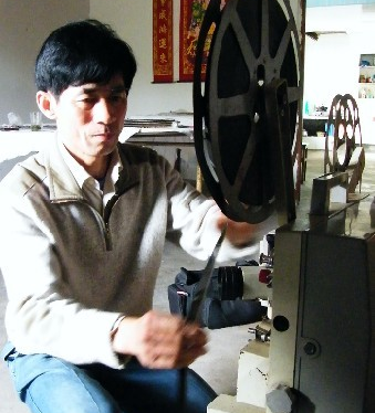 庞和勇是筏头乡佛堂村人,今年60岁。他自幼便是一个电影迷,村里只要放露天电影,他几乎一场不落。“第一次看的是《南海潮》上集。当时我站在银幕后面,好奇地用一根小树枝去捅了捅银幕,幕布动了,银幕上的人影也跟着动了。我感到既新鲜又兴奋。我想,要是长大了能够放电影,那该有多幸福啊!”