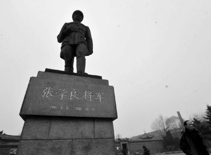 只要没有什么别的安排,74岁的郭春光每天上午都会早早来到帅府广场。站在广场上的张学良雕像前,郭春光会向遇到的每一个游客讲解:雕像上,张学良的出生日期是错的,他正确的出生日期应该是1901年6月4日,而不是6月3日。