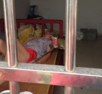 后来,找到她的儿子罗师傅,跟着他进了他家,老奶奶很瘦弱,穿着一条短裤坐在凳子上。