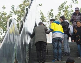 昨日,合肥市三里庵人行天桥,一位94岁的老人拄着拐杖,慢慢上下天桥。不时有市民从他身边走过,看得出,不少市民经过时,有些犹豫。半小时后,老人终于通过人行天桥,“其实我不需要扶,我可以走。”