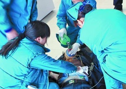 昨日上午10时40分,在郑州市紫荆山路与东里路交叉口西南角的一座商场门前,一位老大爷被医护人员抬上了救护车,一旁陪同的是他悲伤的家人。“没抢救过来,已经不行了。”车上的一名医护人员悄声说。