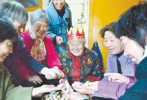 近日,在涧西区重庆路第三社区,83岁的独居老人姜素琴家里一片欢声笑语。当天是姜素琴的生日,社区志愿者和社区工作人员带着饺子馅、面粉和蛋糕赶来,一边陪老人聊天,一边包老人最爱吃的饺子。