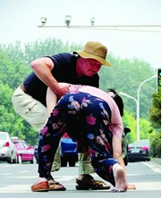 11月29日9时20分左右,记者乘公交车经过汴京公园时,看到一位年约7旬的老人骑着一辆自行车由西向东逆向行驶。走到中兴楼时,老人的大衣突然被风吹到自行车前轮内,连人带车摔倒在快车道。此时,由东向西的车流不断,公交车前方的一辆私家车看见有情况,一个急转绕过了摔倒的老人。这时,两位离老人10多米远的中年女士看到老人摔倒,从东西两个不同的方向向老人跑去。一人将老人扶起,将绞在车轮内的大衣弄出来并将老人搀向路边,另一人将自行车挪离快车道。