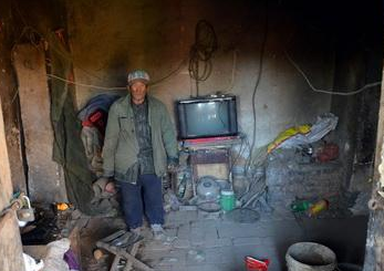 吴锡云家里有一台破烂的黑白电视,记者问还能不能看,吴锡云冲记者伸了一个手指头,只能看一个台。