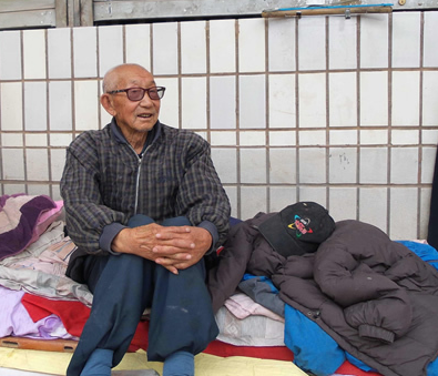96岁的王德修老家在昭通,根据云南关爱抗战老兵计划项目和深圳龙越慈善基金会确认,他1937年参加滇60军。新中国成立后,老人并没有回到家乡,而是留在昆明,以捡垃圾为生。3年前,因为自己所住的出租房拆迁,他便搬到了圆通山附近一个商铺的角落里安家。