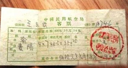 王玉成依然清晰地记得自己第一次坐飞机的经历,那时他32岁,“重庆的机场还在白市驿,航班很少,有时好几天才会有一班,所以机票上并没有写日期。”