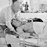71岁的卢军岱,每天要守在因遭遇车祸而瘫痪的儿子床前,拍腿44下,揉腿44下,捋腿44下,打弯88下。每天要累计做2小时,活动3000多次。每天,他还要把80公斤重的儿子扶起来、放下去、翻过来、翻过去,每个动作至少做4次。他期待着有一天,儿子能够站起来,还能叫他一声“爸”。